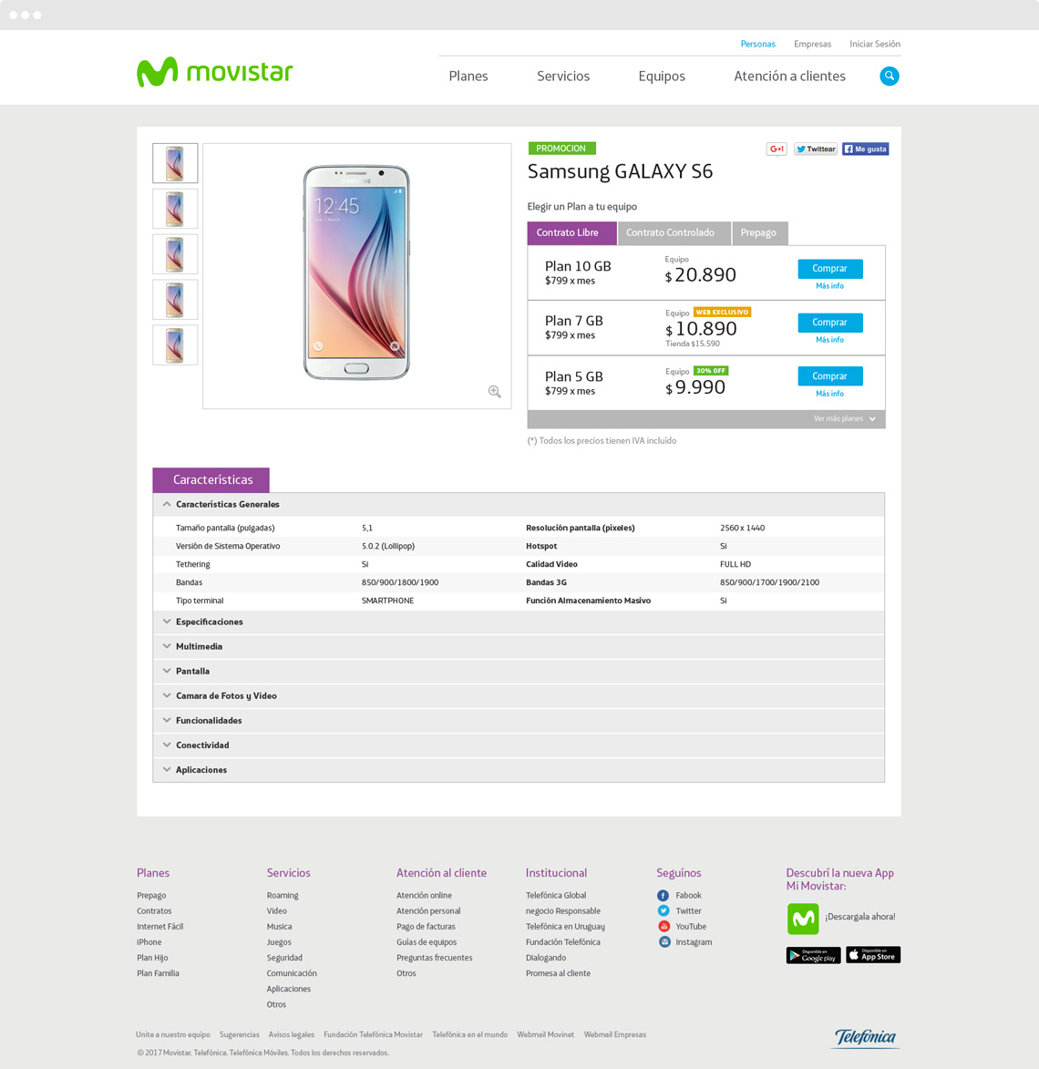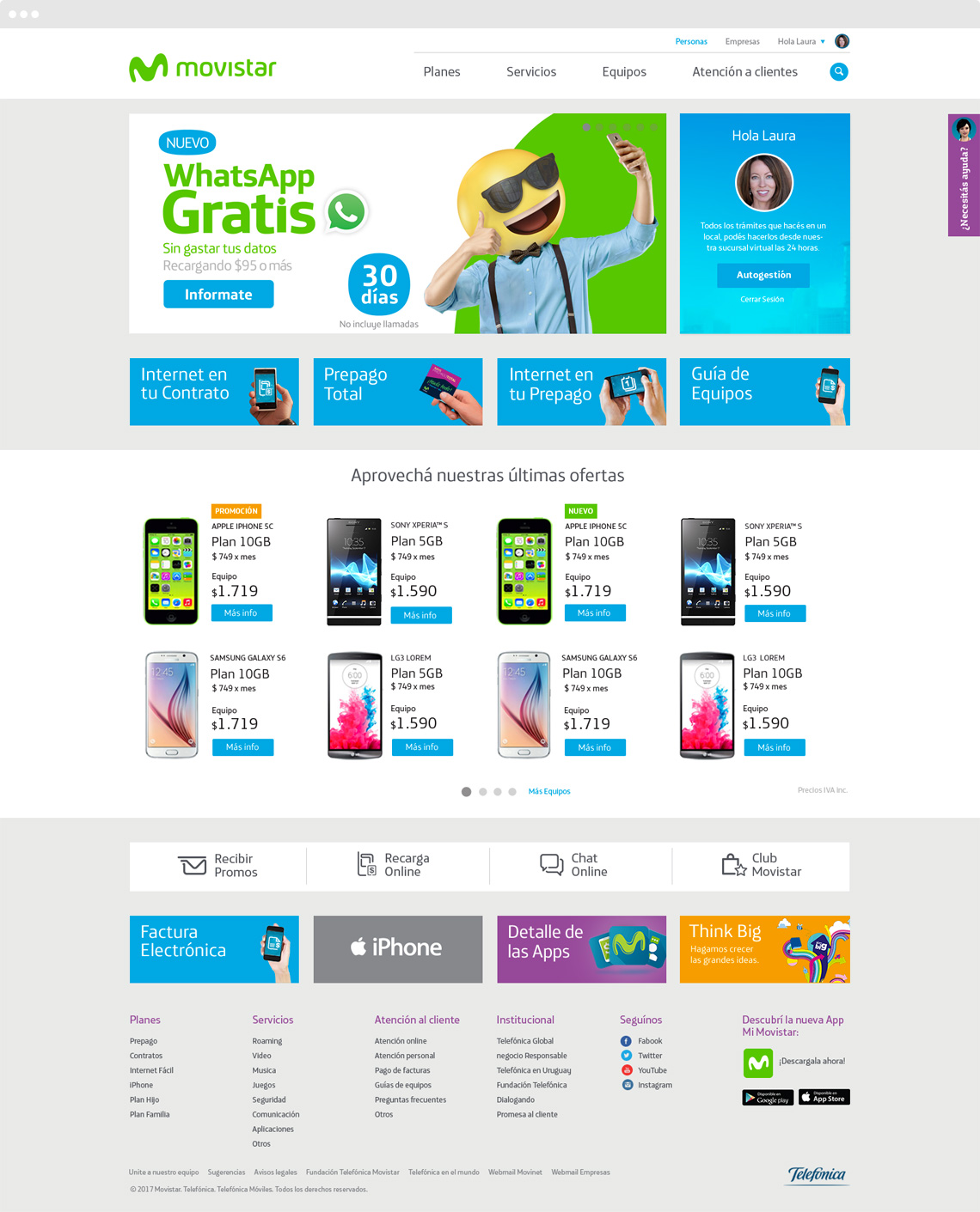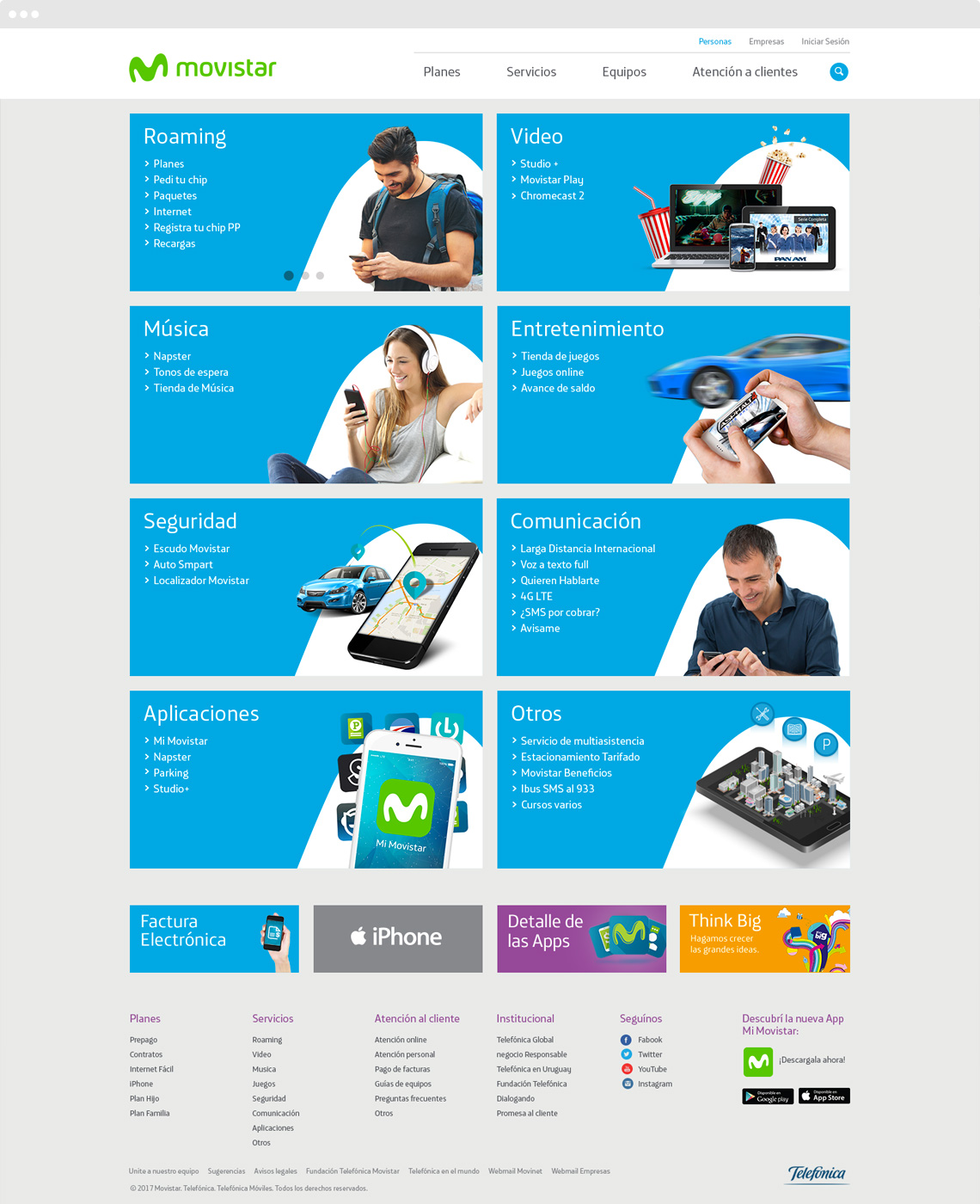 Diseño y desarrollo de sitio web de Movistar Uruguay.