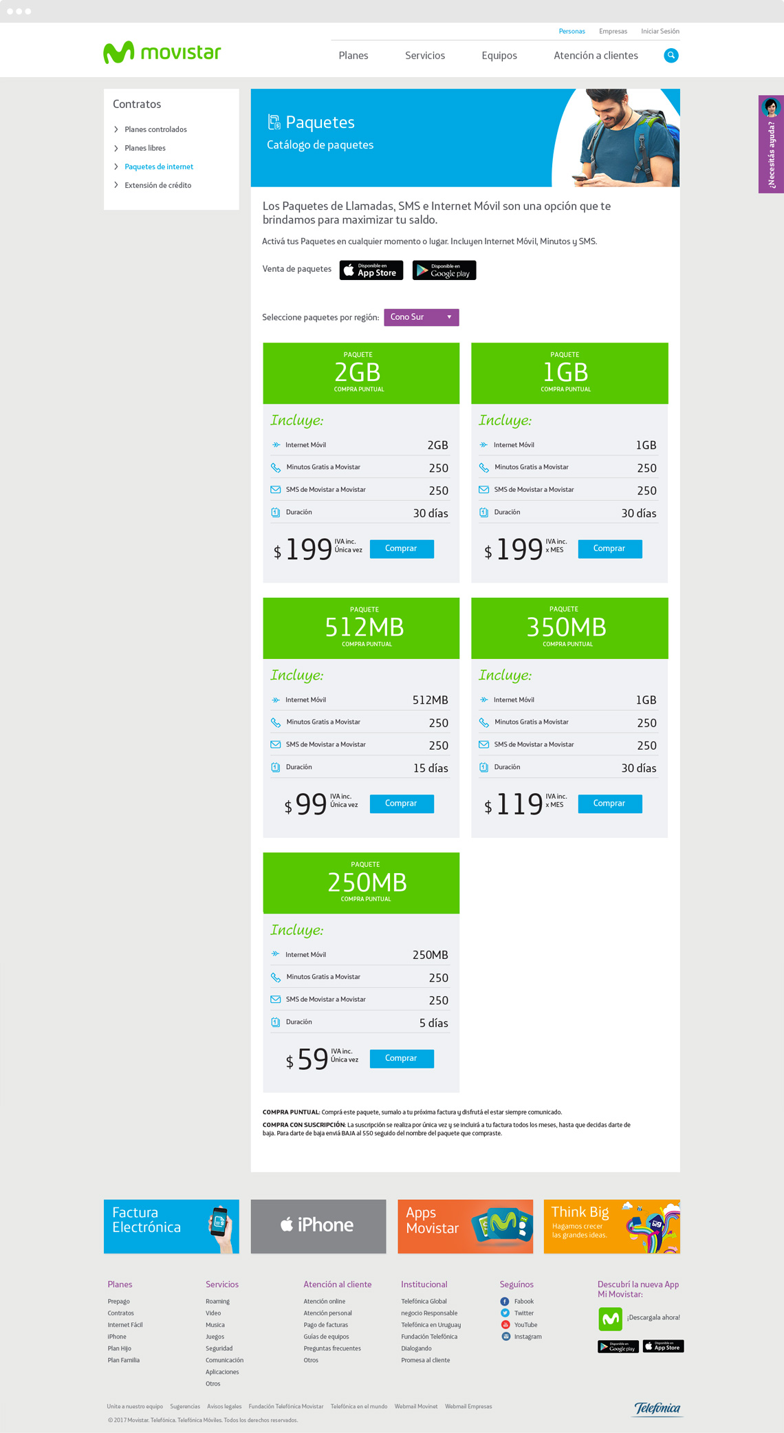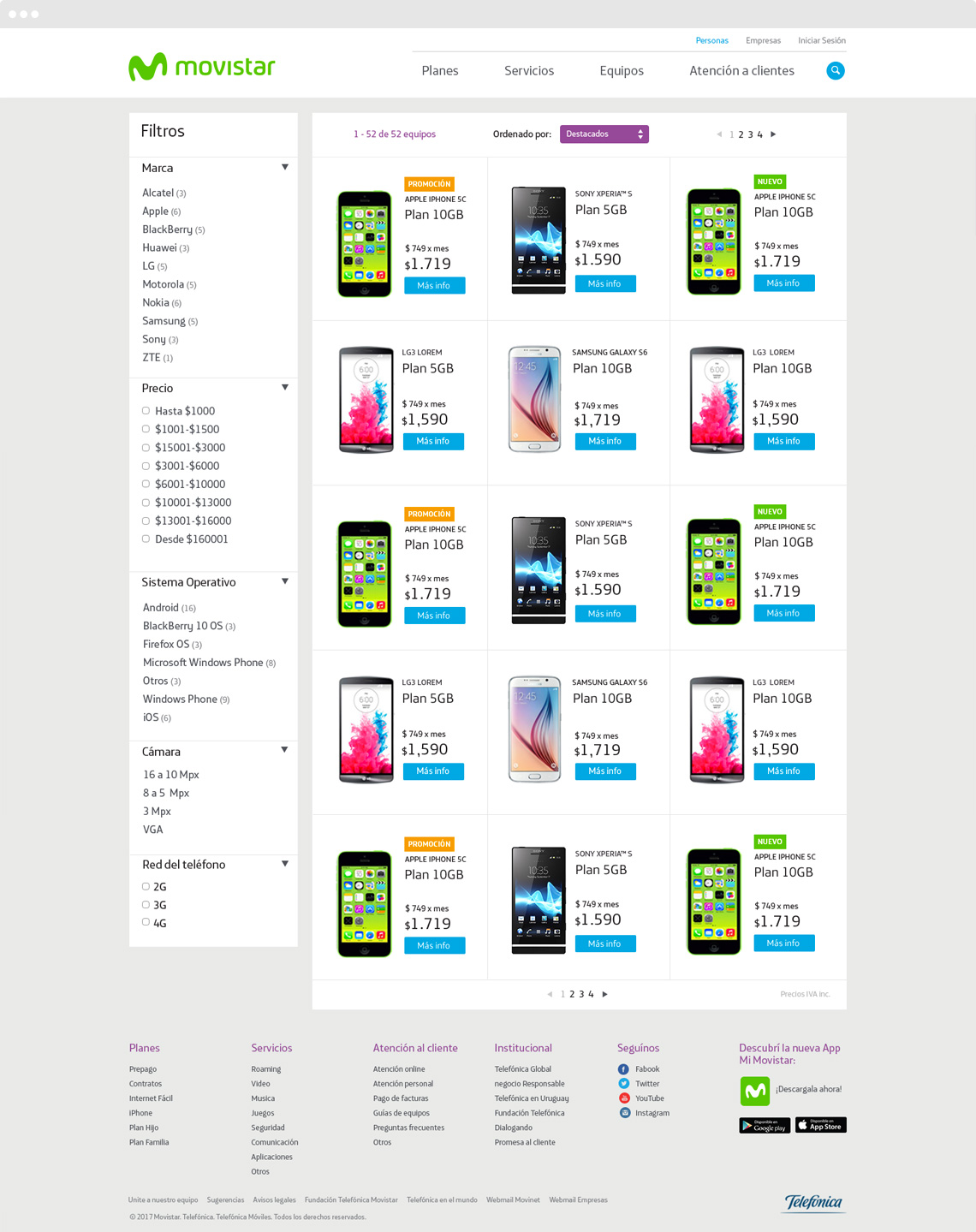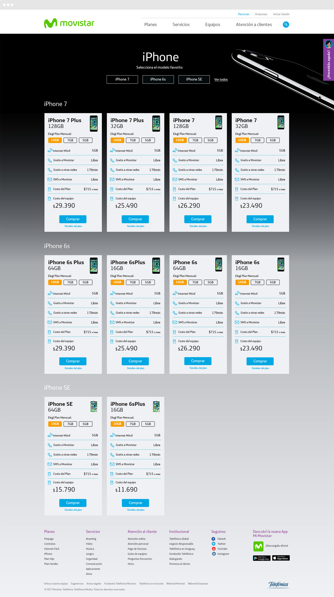 Diseño y desarrollo de sitio web de Movistar Uruguay.